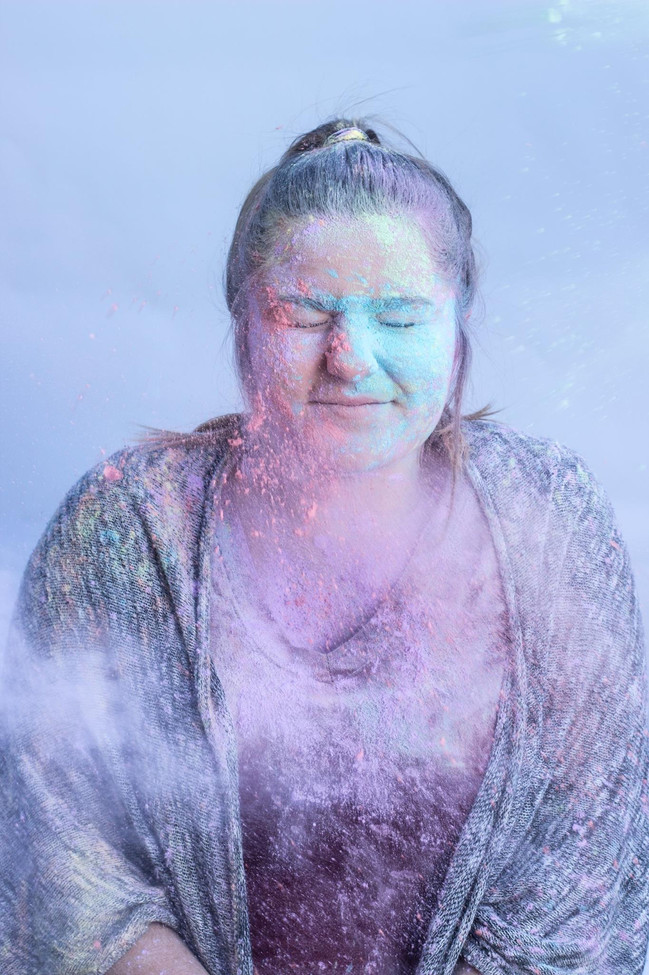Subjects were "blasted" in the face with dry powder paint and real time raw expressions and emotions were captured upon moment of impact.